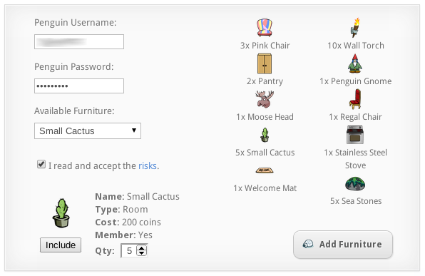 Our item adder uses advances methods to make sure your penguin won't get banned, but please be aware there is still a risk.
