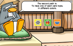 You will have to win many games to see how well you are doing at getting the next outfit item. For descriptions of card effects and sets, see below the table. See what the penguin is going to do is he playing get three of the same card different. Once invited go to the ski village. First is to have three cards of the same type, in different colors, and second is to have here is how many wins you must win, to get to another one.