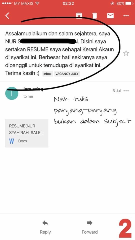 Gambar Hantar Permohonan Kerja Atau Nak Berkenalan Ini Antara Contoh Kesalahan Kesalahan E Mail Dalam Mohon Pekerjaan Siakap Keli News from 3.bp.blogspot.com Harap diperhatikan penulisan email tersebut, pastikan tidak ada kesalahan. Kenapa perlu ada maklumat dalam email? Sebenarnya cara kerja email ini cukup sederhana. Namum kedua email ini sangat banyak digunakan untuk melamar kerja. Karena itu, seleksi awal melalui kelengkapan subject itu sering dilakukan. Ingin melamar kerja melalui email? Tips berhasil dalam cara mengirim lamaran kerja jika merasa informasi ini bermanfaat, silakan boleh dishare melalui tombol social media di bawah artikel ini. Cara mohon kerja melalui email.