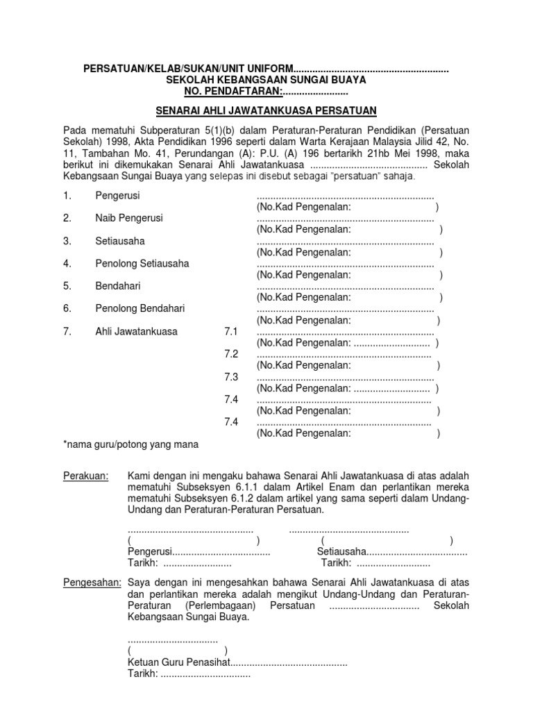 Senarai Ahli Jawatankuasa Persatuan from imgv2-1-f.scribdassets.com Sebagai seorang pelajar sekolah, maklumat ini sangat penting. For faster navigation, this iframe is preloading the wikiwand page for senarai persatuan di malaysia. Berikut adalah senarai koperasi di malaysia yang menawarkan pelan pembiayaan peribadi atau pinjaman peribadi. Perlukan seorang yang pakar untuk menolong anda dalam tempoh pantang? 12 hsbc bank malaysia berhad f 13 hong leong bank berhad l 14 india international bank (malaysia) berhad f 15 industrial and commercial bank of china (malaysia) berhad f 16 j.p. Lengkap dengan ibu negeri di seluruh kawasan, mengikut urutan. Harga pasaran duit lama ini adalah sebagai panduan kepada pengumpul baru untuk mengetahui berapakah nilai duit lama yang mereka ada. Mereka juga antara 300 orang dari 23 negara di asia pasifik yang berjaya.