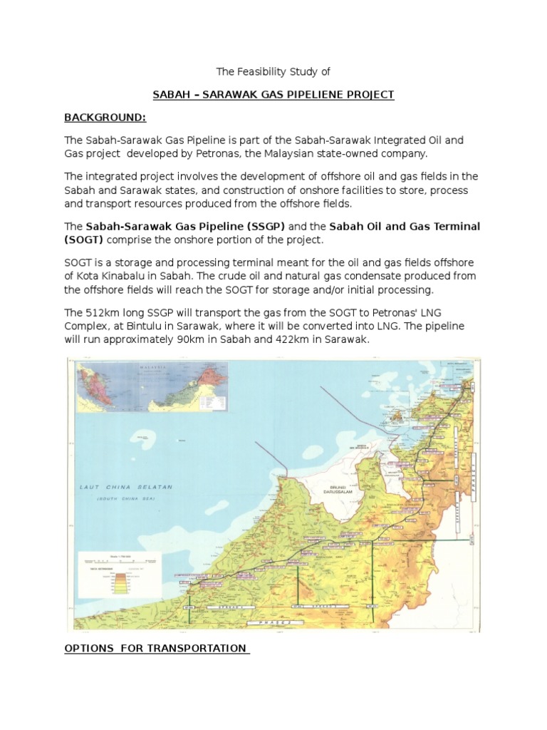 The pipeline, which was completed early this year, is meant to channel raw gas from kimanis in sabah to bintulu in sarawak. Summarythe sabah sarawak gas pipeline (ssgp) is a 512 km, 36 inch pipeline that will link the gas fields of sabah to the mlng export complex at bintulu. The pipeline is to channel gas from kimanis in interior sabah to bintulu port in northern sarawak for processing and export. 521 km x 36 dia onshore natural gas pipeline and associated facilities (metering station, compressor station, telecommunication equipment, scada) etc. The topography of the proposed pipeline route poses major construction challenges.