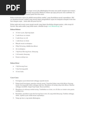 1/2 ekor ayam atau 5 ketul peha ayam (terpulang) garam dan kunyit 1/2 ulas bawang besar (dihiris bulat) 10 ulas bawang merah (dikisar) 2 ulas bawang putih (dikisar) 1 inci halia (dikisar) 2 batang serai (diketuk) 2 sudu besar cili kisar 1 biji tomato (dihiris) 1/2 cawan sos tomato garam dan gula secukup. Lihat juga resep ayam tahu telor merah enak lainnya. Dan setiap versi yang dibuat pasti mempunyai keistimewaan dan kesedapannya yang tersendiri. The complex flavors of this dish are perfectly balanced and not overwhelmed by heat, making it a crowd favorite. Ayam masak merah ayam 1 ekor(goreng garam kunyit) bawang besar 2 biji bawang putih 10ulas serai 3 batang halia 2 inci.